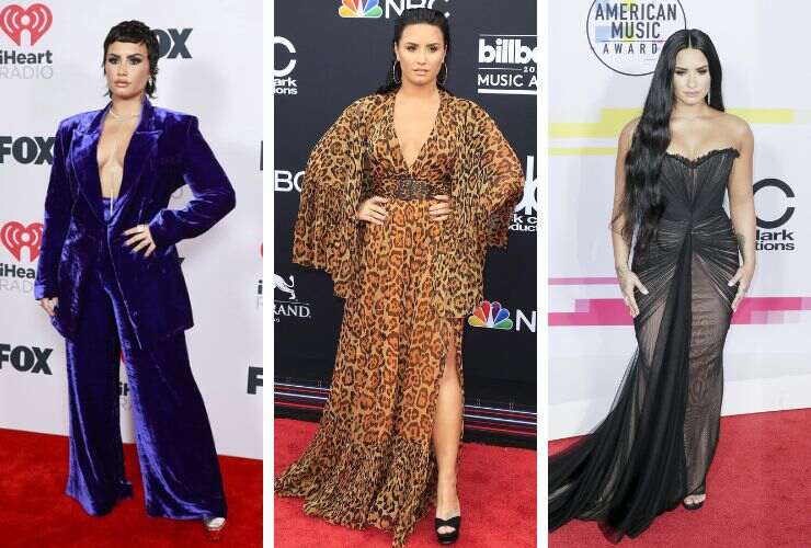 Ha iniziato a recitare da giovanissima e ha calcato i palcoscenici internazionali. Non dovrebbe stupire quindi la sua apparizione costante sui red carpet. Demi Lovato ha spesso manifestato il bisogno di cambiare anche attraverso i suoi outfit. Uno dei più recenti l’ha sfoggiato sul red carpet degli iHeart Radio Awards 2021. Dopo un lungo periodo di assenza, Demi Lovato è tornata sulla piazza e ha indossato un completo in velluto blu elettrico con scollatura profonda e spalline a punta di Dundas. A completare il look manicure ton sur ton e décolleté con platform d’argento. Ai Billboard Music Awards 2018, ha optato per un abito a trama animalier, con maniche larghe e maxi cintura ton sur ton ad altezza vita di Christian Dior, collezione Resort 2009.