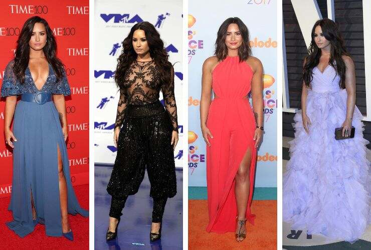 Sul red carpet degli American Music Awards del 2017, Demi Lovato ha optato per un abito con base nude completamente avvolto da una trama nera in chiffon, senza spalline e con corpetto rigido dallo scollo a cuore. L’abito porta la firma di Ester Abner. Agli MTV VMAs 2017, l’artista ha calcato il tappeto rosso proponendo un look total black con pantaloni a vita alta completamente rivestiti di paillettes e blusa in chiffon nude con ricami in pizzo. Il completo è realizzato da Zuhair Murad Couture e fa parte della collezione Autunno 2016.