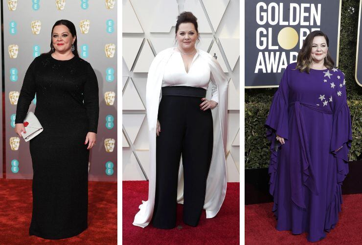 Sul tappeto rosso degli Oscar 2019, Melissa McCarthy ha optato per un look classico black&white. L’attrice ha indossato un completo jumpsuit con pantaloni neri a vita alta e blusa bianca in raso con mantella abbinata di Brandon Maxwell. Lo stesso anno ha partecipato ai BAFTA e, sul red carpet, ha sfoggiato un long dress nero rivestito di glitter.
