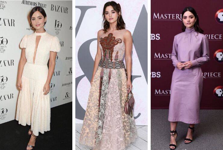 Ospite dell’evento organizzato da Harper’s Baazar per celebrare Women of the Year Awards del 2017, Jenna Coleman ha optato per un midi color panna, con gonna drappeggiata e scollo profondo di Emilia Wickstead. Alla première di New York per la seconda stagione di Victoria, l’attrice ha proposto un midi lilla a collo alto di maison Valentino, a cui ha abbinato sandali con tacco a spillo total black.