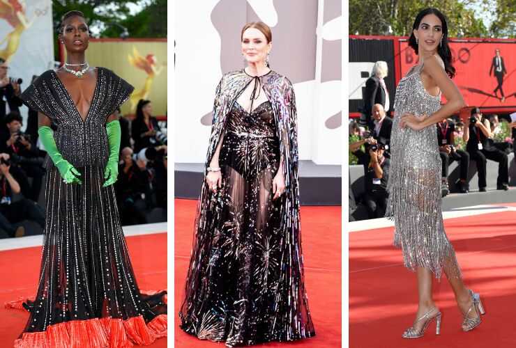 Anche Julianne Moore, presidente di giuria a Venezia, ha sancito il debutto sul red carpet proponendo una creazione di Valentino Couture che, seppur rivestita di paillettes d’argento, nasconde appena il look nude. Il long dress in chiffon con mantella ton sur ton propone uno stile vedo-non-vedo ad altezza gonna.