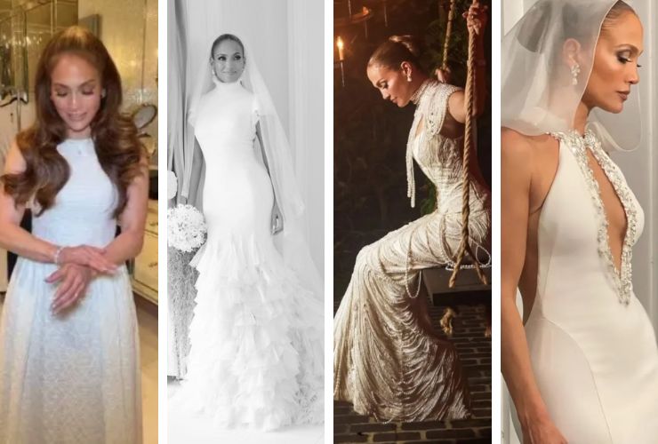 Ma, non contenta, JLo ha organizzato una seconda cerimonia, questa volta includendo anche invitati VIP. E ha sfoggiato tre abiti realizzati da Ralph Lauren: il primo, sfoggiato durante la cerimonia, punta tutto sulla gonna ravvivata da 1.000 fazzoletti ricamati a mano. Il secondo abito invece è rivestito di perle a cascata ed è pronto a dettare tendenza. Così come il terzo, con cappuccio in chiffon e una scollatura rifinita da cristalli.