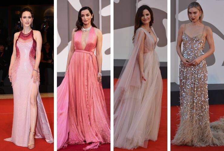 Uno degli abiti più eterei e romantici di questa edizione è quello total chiffon proposto da Giulia Elettra Gorietti, che gioca con sfumature pastello e porta la firma di Luisa Beccaria. Ma l’abito che probabilmente trionfa su tutti quest’anno è quello total pink proposto da Ana De Armas. L’attrice è arrivata in Laguna per presentare Blonde e, sul red carpet, ha incantato la platea con una creazione plissé di Louis Vuitton. Nilufar Addati ha sfilato diverse volte sul tappeto rosso di Venezia 2022, ma l’abito più glamour è quello in velluto nero di Chiara Boni.