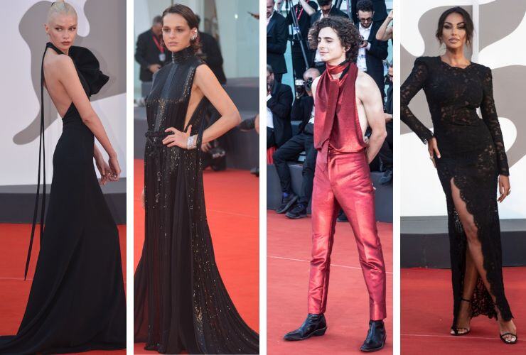 In chiusura dei look più belli di questa Mostra del cinema di Venezia troviamo Madalina Ghenea in un long dress in pizzo total black di Ermanno Scervino, Stella Maxwell in Pinko, Sara Serraiocco in Fendi e Timothée Chalamet in Haider Ackermann.