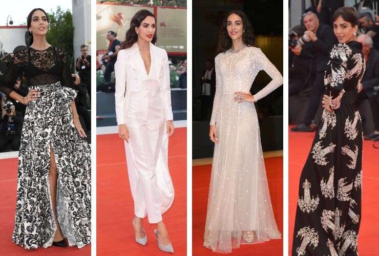 Si torna al connubio black&white sul quarto red carpet della Mostra del cinema di Venezia 2022. La madrina ha optato per una creazione di Dior con gonna floreale e corpetto a maniche lunghe con ricami in pizzo. Per l’anteprima del film L’immensità con Penelope Cruz, Rocío Muñoz Morales ha puntato ad un tailleur total white di Kiton con gilet e pantaloni a vita alta. Dividendo il tappeto rosso con Tilda Swinton e Penleope Cruz, la Madrina ha poi proposto un abito romantico, total white a maniche lunghe di Philosophy di Lorenzo Serafini. Per Blonde, invece, ha proposto un long dress total black con decorazioni rivestite di perle di Moschino.