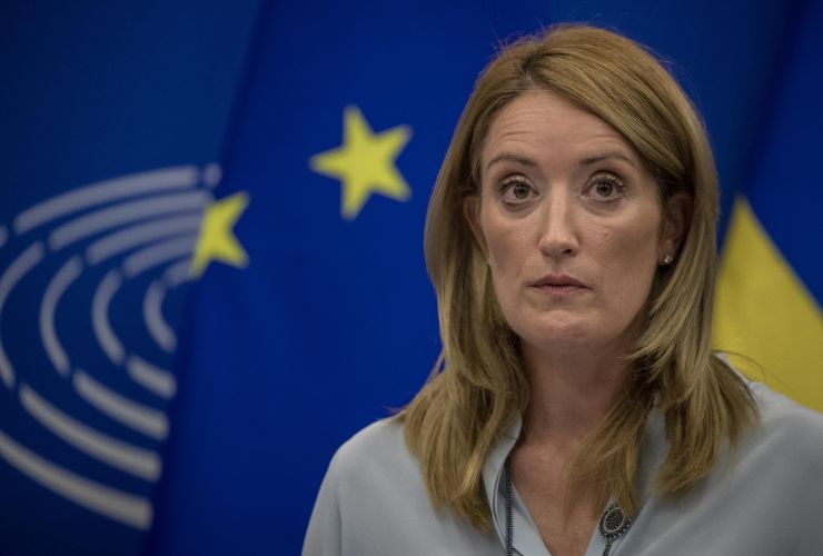 Roberta Metsola, presidente del Parlamento europeo. Foto Ansa/Epa Christophe Petit Tesson