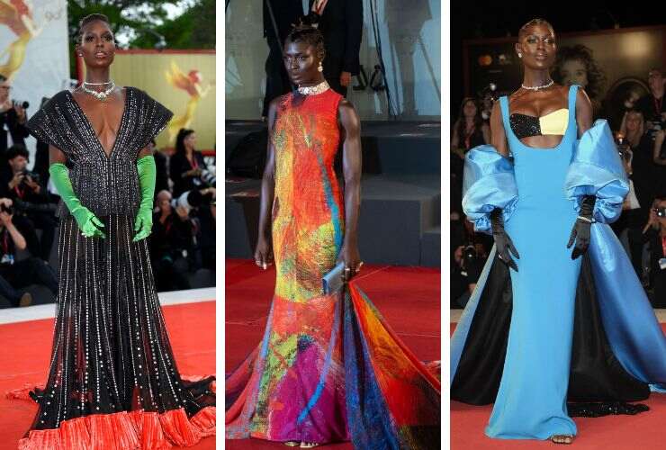 Per la première di Bardo, l’attrice ha scelto nuovamente una tavolozza variopinta di Christopher John Rogers, una sorta di opera d’arte astratta della collezione Pre-Fall 2022 del brand accompagnata da gioielli Bulgari. Al suo debutto in Laguna, Jodie Turner-Smith ha seguito il trend delle trasparenze optando per un long dress nero in stile vedo-non-vedo rivestito di strass di Gucci. A completare in questo caso collier di smeraldi e guanti in raso verde prato. Un ultimo look in Laguna è quello di Harbison, azzurro cielo in raso con dettagli cut out e crop top rivestito di paillettes. L’abito si completa con maniche a sbuffo e strascico ton sur ton ed è della collezione Resort 2023.