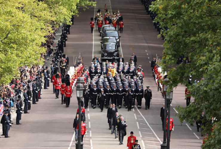 Londra si è svegliata in fermento già alle prime luci dell’alba, quando le ultime persone hanno reso omaggio al feretro, prima che fosse portato all’Abbazia di Westminster. A seguire la bara sono stati i suoi figli: Carlo, Andrea, Anna ed Edoardo. Dietro di loro anche il principe William e il principe Harry. Gli altri, invece, hanno raggiunto la chiesa in automobile.