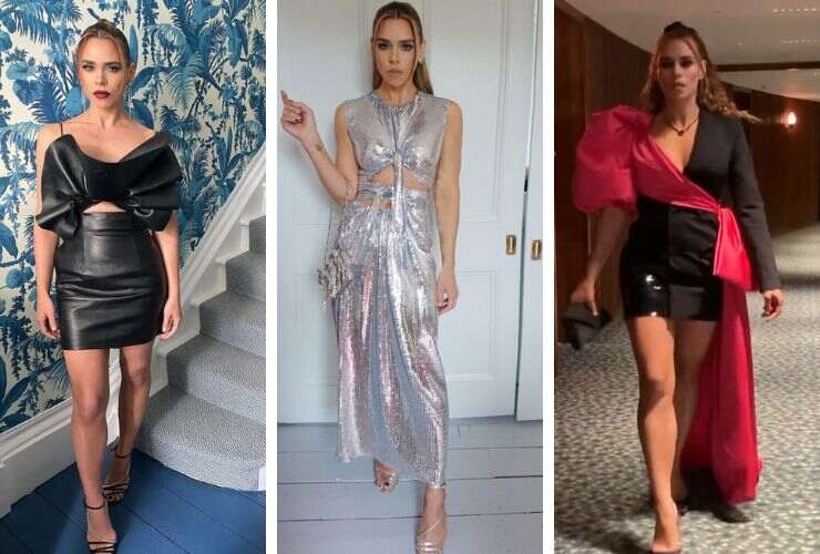 Sul red carpet per la promozione del suo film, Billie Piper ha proposto un tubino d’argento effetto metallico senza spalline di Madga Butrym, a cui ha abbinato sandali di Jimmy Choo e gioielli Messika. E, ancora, durante il press tour di Rare Beasts ha proposto un altro abito argentato con dettagli cut out effetto specchio di Paco Rabanne.