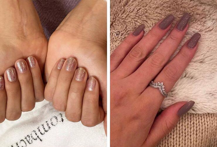 Non solo nail art golose, ma anche fortemente legate agli elementi come quello della terra. L’Autunno ha scelto il marrone in tutte le sue declinazioni come colore per eccellenza e spazia dal tono più argilloso all’effetto sabbia, più caldo e avvolgente. Anche il nail artist delle celebrità Tom Bachik ha mostrato su Instagram i gusti raffinati delle sue star, come Selena Gomez che ha optato per una manicure quadrata tortora screziata d’oro. Ed è sempre Selena Gomez a giocare con una cascata di glitter, proponendo una manicure corta e base quasi effetto nude, tempestato di glitter d’oro.