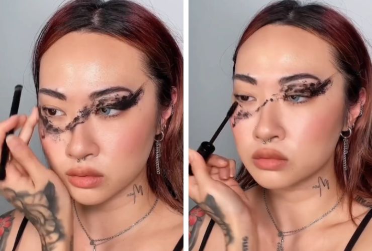 Prendete un mascara, ma non passatelo sulle ciglia: piuttosto utilizzatelo come una sorta di ombretto o Kajal da passare sulla palpebra o per realizzare decorazioni effetto smoke che avvolge l’occhio: così avrete l’effetto anti-mascara. Questa tecnica make-up è diventata virale grazie ai tutorial di Divina Muse, beauty guru seguitissima su Instagram e TikTok che quest’estate ha mostrato come utilizzare in modo alternativo il mascara. Complice anche la rinascita di strass e decorazioni per il viso (come i gioielli), questa tendenza ha trovato terreno fertile perché rende il make-up occhi ancora più scenografico e con un solo tool.