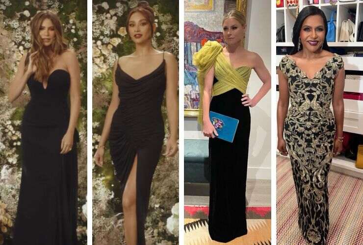 Shay Mitchell è tornata sul red carpet indossando un abito drappeggiato total black. Julie Bowen invece ha proposto un abito con gonna in velluto nera e crop top intrecciato in chiffon di Dolce&Gabbana. Sensualissima Sofia Vergara nel suo abito total black con scollatura a V di Laura Basci. Infine Mindy Kaling ha optato per una trama barocca in oro su contrasto nero di Pamella Roland.