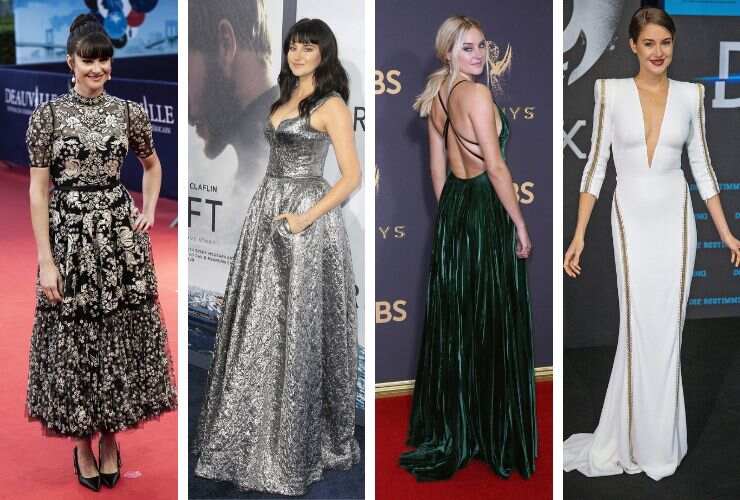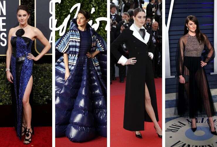 Al Deauville American Film Festival del 2018, Shailene Woodley ha proposto una creazione total black a trama floreale e rivestita di paillettes champagne di Christian Dior Resort. Per la première di Adrift svoltasi a Los Angeles quell’anno, ha sfoggiato un abito grigio effetto metallico di Rochas. Sul red carpet degli Emmy Awards 2017, Shailene Woodley ha scelto un look total velvet, con un abito verde smeraldo di Ralph Lauren. Alla première di Divergent a Berlino nel 2014, ha proposto un abito total white attraversato da linee parallele in oro, spalline rigide e scollo a V di Zuhair Murad.