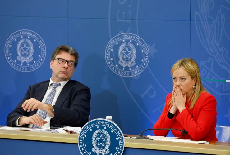 Giorgetti e Meloni. Foto Ansa/Fabio Frustaci