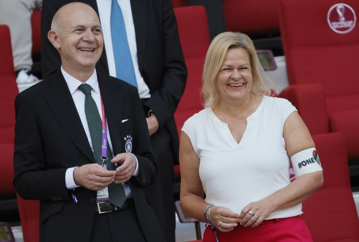 A rafforzare la presa di posizione teutonica in tribuna la presenza del ministro dello sport del governo Scholtz, Nancy Faeser. Lei indossa e mostra orgogliosa proprio quella fascia one love che era stata vietata sul campo dalla FIFA ai giocatori che ne avevano fatto richiesta.