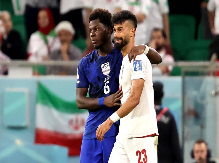 Giocatore americano e giocatore iraniano/FOTO ANSA/Abedin Taherkenareh