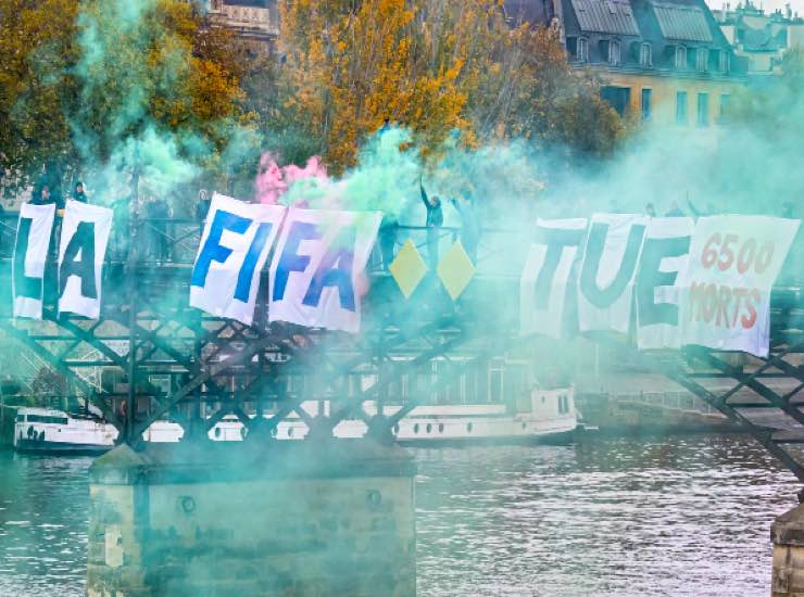 Proteste a Parigi contro FIFA/FOTO ANSA/CHRISTOPHE PETIT TESSON
