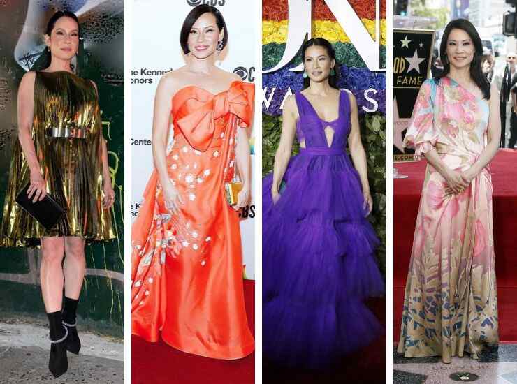 Negli ultimi anni, anche causa pandemia, Lucy Liu non ha partecipato a moltissimi red carpet. Uno dei più recenti è quello dell’Asian Art & Action Gala del 2021. Per l’occasione, l’attrice ha proposto un minidress plissè in oro effetto specchio con cintura metallica ad altezza vita di Christopher Kane, collezione Primavera/Estate 2022. In aggiunta ha sfoggiato tronchetti in velluto con dettaglio gioiello, clutch di Ferragamo total black e gioielli di Anita Ko. Di una sfumatura vitaminica è invece l’abito arancione proposto al 42esimo Annual Kennedy Center Honors del 2019. Sul red carpet, l’attrice di The Sandman ha proposto una creazione romantica in raso con maxi fiocco ad altezza scollatura e una cascata di fiori che attraversa la lunghezza e raggiunge lo strascico di Georges Chakra Couture, collezione Primavera/Estate 2019.
