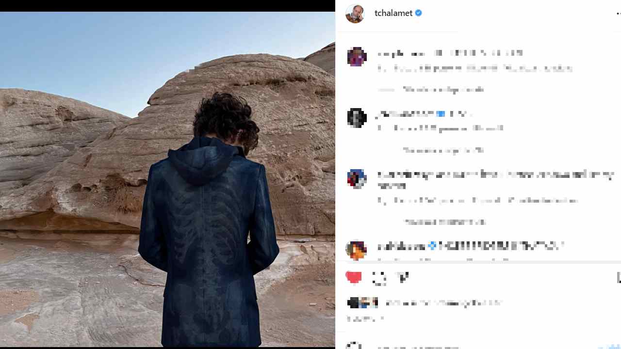 Timothée Chalamet in uno scatto inedito sul set di Dune – Parte 2 (Credits: Timothée Chalamet/ Instagram) – VelvetMag