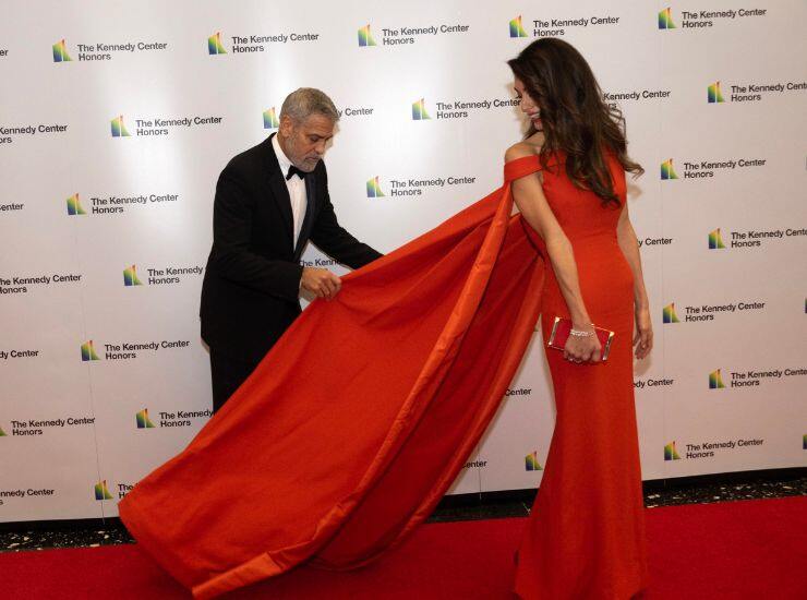 Amal incanta il red carpet dei Kennedy Center Honors e George Clooney l’aiuta con l’abito