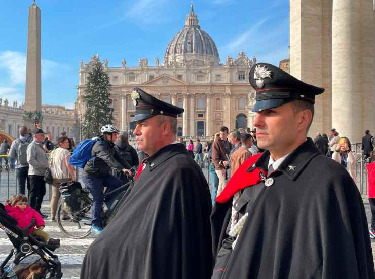 Sono attese fino a 200mila persone per i funerali di papa Benedetto XVI il 5 gennaio in piazza San Pietro. Foto Ansa/Carabinieri