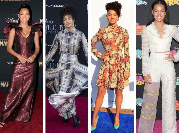 L’attrice ha partecipato anche alla première di The Mandalorian, serie TV ambientata nell’universo di Star Wars disponibile su Disney+. Sul red carpet del 2019, ha optato per un abito magenta lucido effetto metallico con spalline ricche di volant di The 2nd Skin Co. a cui ha abbinato décolleté di Loriblu Official e gioielli di Smiling Rocks. Alla première di Maleficent – Signora del male, ha proposto un abito a trama scozzese di Victoria Hayes. Per Disney Channel, nel 2018, ha indossato un minidress floreale di maison Valentino. E per Disney Freaky Friday ha optato per un completo jumpsuit di diverse sfumature di bianco di John Paul Ataker.