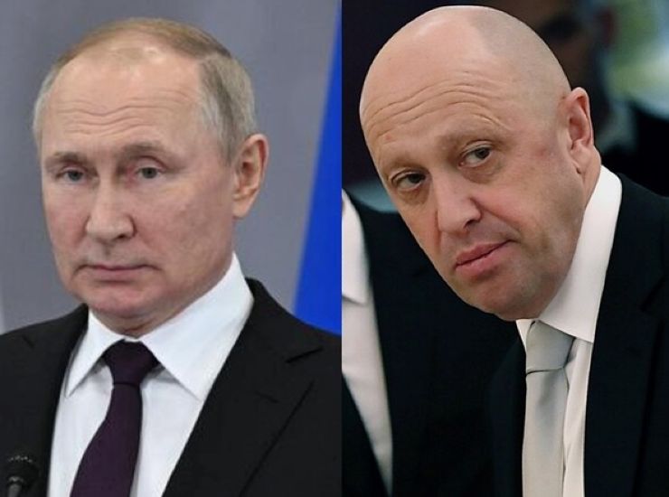 Valdimir Putin ed Evgenij Prigozhin. Quest’ultimo, imprenditore legato ai servizi segreti russi, ha fondato il gruppo di mercenari russo Wagner, inviato da Mosca in Ucraina. Foto Twitter @generalsvr_en
