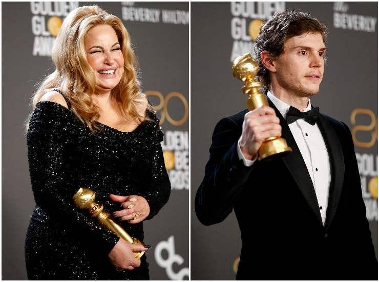 Jennifer Collidge ed Evan Peters, entrambi vincitori ai Golden Globes 2023 ( EPA/CAROLINE BREHMAN) – VelvetMag