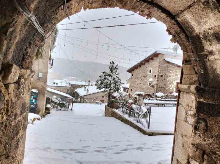La neve caduta a Campo di Giove, sull’Appennino abruzzese, il 10 gennaio 2023. Foto Ansa
