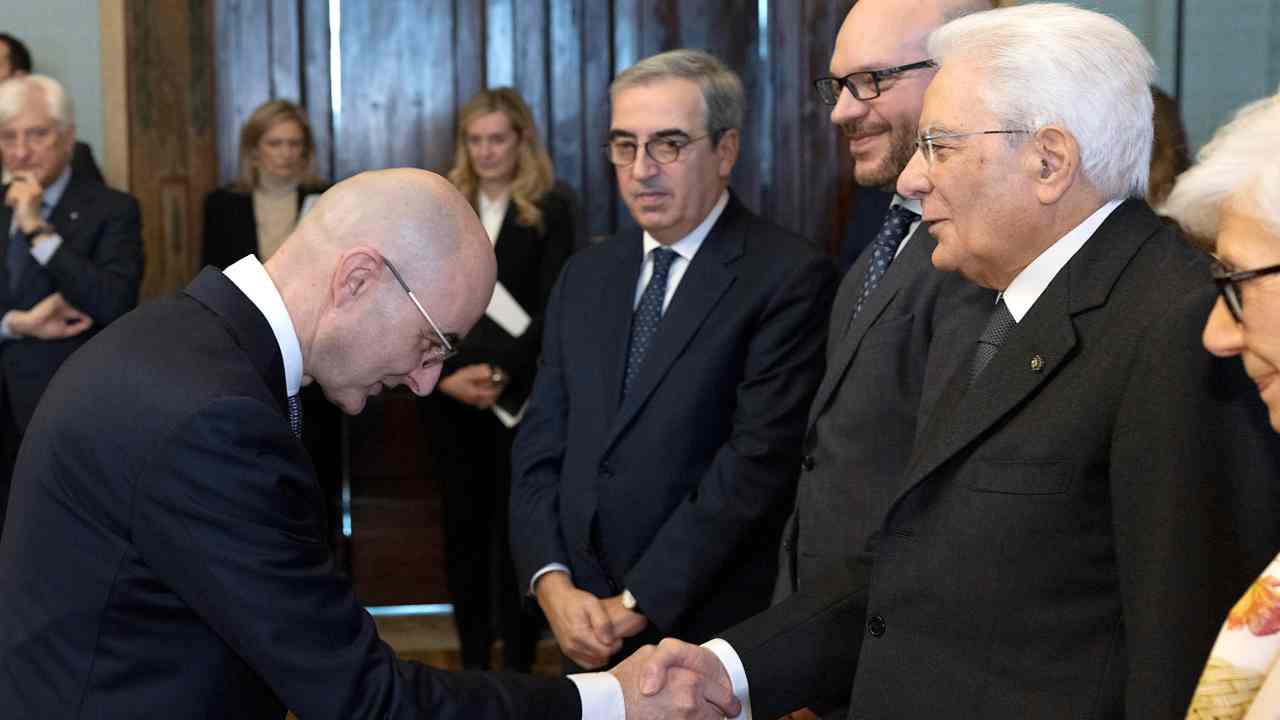 Il Presidente della Repubblica Sergio Mattarella con Fabio Pinelli, nuovo vicepresidente del Csm. Foto Ansa/Quirinale Paolo Giandotti