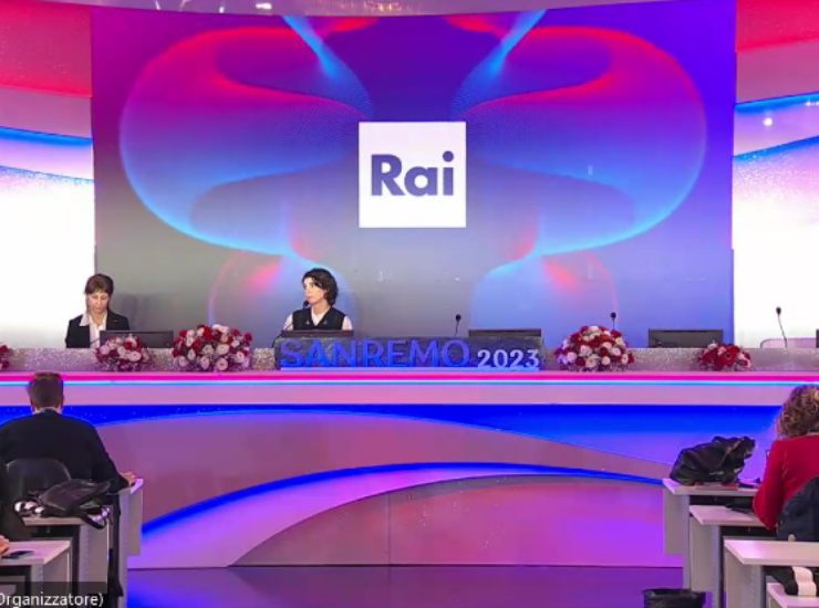 Giorgia a Sanremo. Crediti: screenshot diretta conferenza stampa