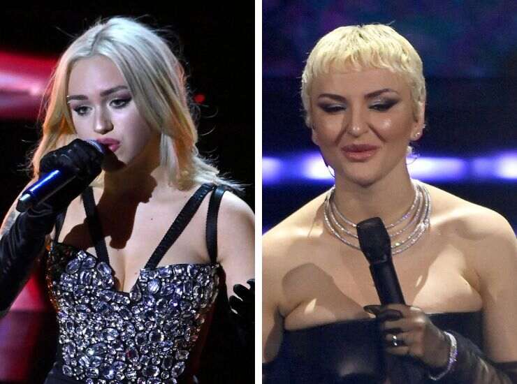 Elisa ripropone il look total wet che gioca in lunghezza, con una folta chioma scura. Lato make-up, invece, oltre all’eyeliner ben marcato ha puntato tutto sulle labbra rosso fuoco. Giorgia invece sceglie un beauty look più delicato e minimal, effetto glow. Lo stesso utilizzato da Madame. La cantante per la serata duetti ha portato con sé IZI e ha riproposto il suo Wolf Cut mosso con frangia a tendina. Lato make-up, invece, ha proposto un tocco minimalista ma luminoso.