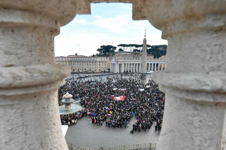 Piazza San Pietro durante la Preghiera dell’Angelus @Crediti Ansa – VelvetMag