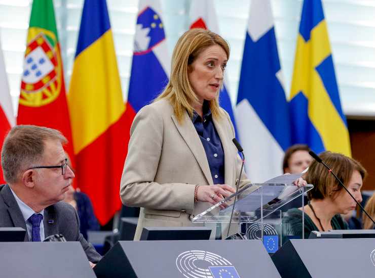 La presidente del Parlamento europeo Roberta Metsola. Foto Ansa/Julien Warnand