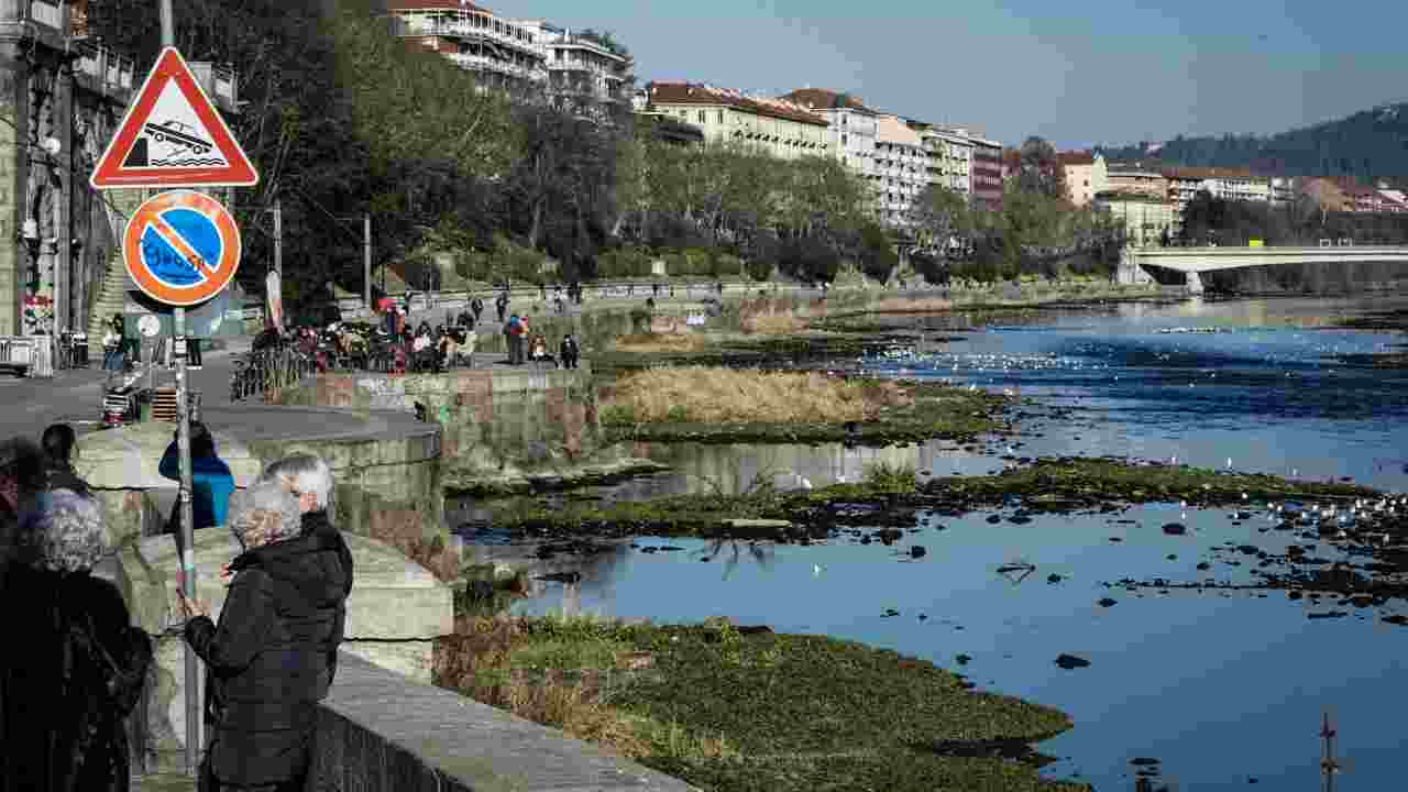 La portata del fiume Po a Torino, diminuita drasticamente. Foto Ansa/Tino Romano