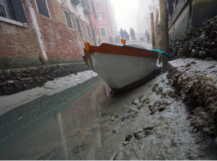Canali in secca a Venezia a causa della siccità. Foto Twitter @citypat1