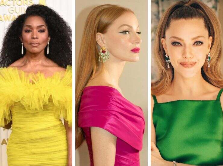 Angela Bassett è tornata ai suoi ricci voluminosi dopo una breve parentesi estremamente liscia. L’attrice lato make-up ha puntato ad un effetto nude, dall’ombretto delicato alle labbra lucide. Jessica Chastain invece ha puntato a labbra sfumatura magenta che richiama l’abito, mentre ha ravvivato lo sguardo con maxi cat-eye, ombretto in oro glitter e ciglia ben delineate. Anche l’acconciatura ha un retrogusto leggermente retrò, con una piega liscia e leggermente voluminosa, con riga centrale.