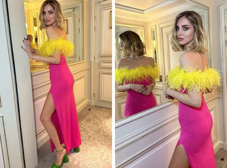 E mentre per Dior ha adottato un look più rock, per l’arrivo a Parigi ha scelto colori più sgargianti, una palette perfetta per la Primavera in arrivo. Chiara Ferragni ha documentato prontamente lo style via Instagram. Un long dress rosa shocking tempestato di strass in rilievo e cascata di piume giallo fuo ad altezza petto. A rendere ancor più speciale il look è la firma. L’abito, infatti, fa parte della sua ultima collezione Chiara Ferragni. In abbinamento ha proposto décolleté verde oliva con tacco largo. Quello che non cambia, a prescindere dal look, è il taglio di capelli. Per Sanremo 2023, l’influencer ha proposto un taglio inedito: un bob cut voluminoso e biondo che accoglie le vibes primaverili e naturalmente detta tendenza.