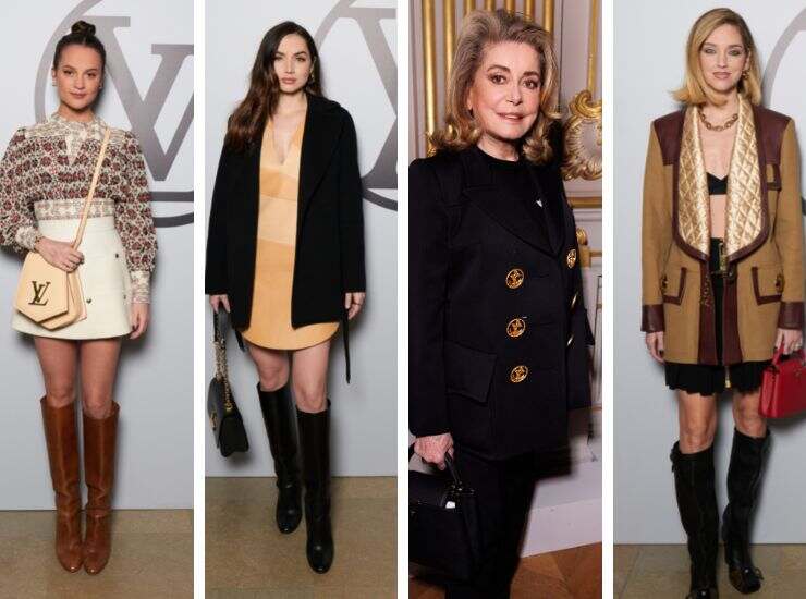 Elegante e minimalista il look di Catherine Deneuve, star del cinema internazionale con il suo tailleur Louis Vuitton total black e maxi bottoni in oro. Chiara Ferragni è riapparsa alla settimana della moda francese dopo aver mostrato il suo supporto a Dior. Per Louis Vuitton invece ha indossato un maxi blazer trapuntato, abbinato a gonna di rouches, stivali ad altezza ginocchio e micro top. Tocco di colore arriva dalla minibag rossa scarlatta.