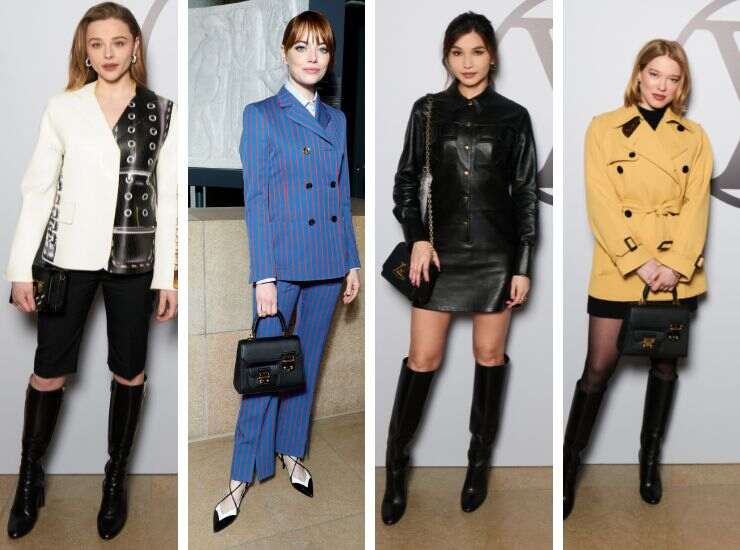 Più rock è invece il look sfoggiato da Chloe Grace: per la sfilata alla Paris Fashion Week ha indossato pantaloni corti effetto cut out ad altezza ginocchia in pendant con gli stivali e giacca in pelle black&white con borchie. Anche Gemma Chan non ha resistito al richiamo del look in pelle, con giacca e minigonna in pendant con gli stivali. Emma Stone porta un guizzo di colore alla sfilata parigina con il suo tailleur blu a righe di Louis Vuitton, con giacca a doppio petto e slingbag della maison. Lea Seydoux ha abbinato al suo minidress total black un trench giallo senape.