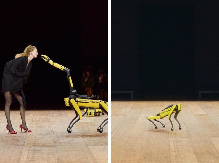 Tornato a Parigi, Coperni questa volta in passerella ha affiancato dei veri robot alle sue modelle, rendendoli partecipi dello show. Pur non indossando capi della nuova collezione Autunno/Inverno 2023, il brand ha trovato il modo perfetto per unire tecnologia e moda, arte e innovazione che procedono di pari passo anche in passerella. I robot firmati Boston Dynamics appaiono improvvisamente in scena e rubano rapidamente l’attenzione. Ancora di più quando uno di questi ha interagito con una delle modelle, “rubandole” la giacca.