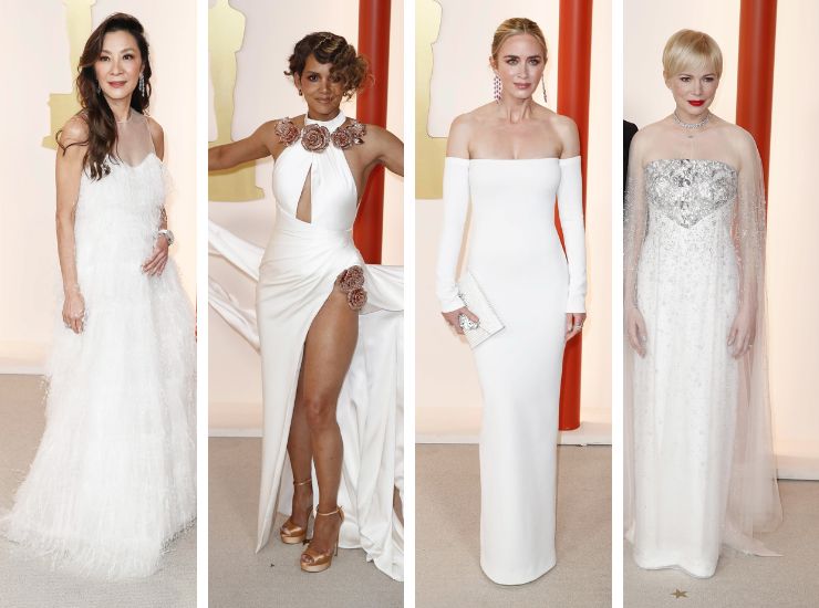 Michelle Yeoh ha trionfato come migliore attrice protagonista agli Oscar 2023. E poi sul red carpet ha dimostrato di apprezzare fortemente il trend degli Academy Awards nel suo long dress total white di Dior Couture. L’attrice ha proposto un abito ravvivato da piume e micro petali in una cascata di tulle, elegante ed efficace. Halle Berry invece non ha potuto rinunciare al doppio fattore glam, con un abito che gioca con i dettagli cut out (come lo spacco vertiginoso ad altezza coscia). In aggiunta decorazioni floreali in rilievo, di una delicata sfumatura ramata con paillettes, e naturalmente il colore bianco. L’abito con leggero strascico porta la firma di Tamara Ralph.