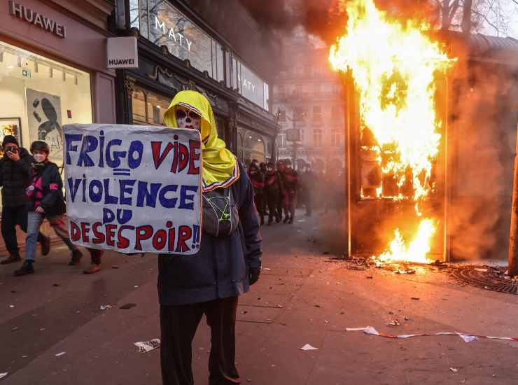 Il 23 marzo proteste e scontri di piazza in centinaia di città di tutta la Francia hanno portato al fermo di polizia per 457 persone. Tra le forze dell’ordine si contano 411 feriti per scontri e tafferugli. La protesta contro la riforma approvata in Parlamento che innalza l’età della pensione da 62 a 64 anni avrebbe potuto ora prendere di mira il sovrano britannico.