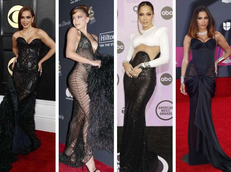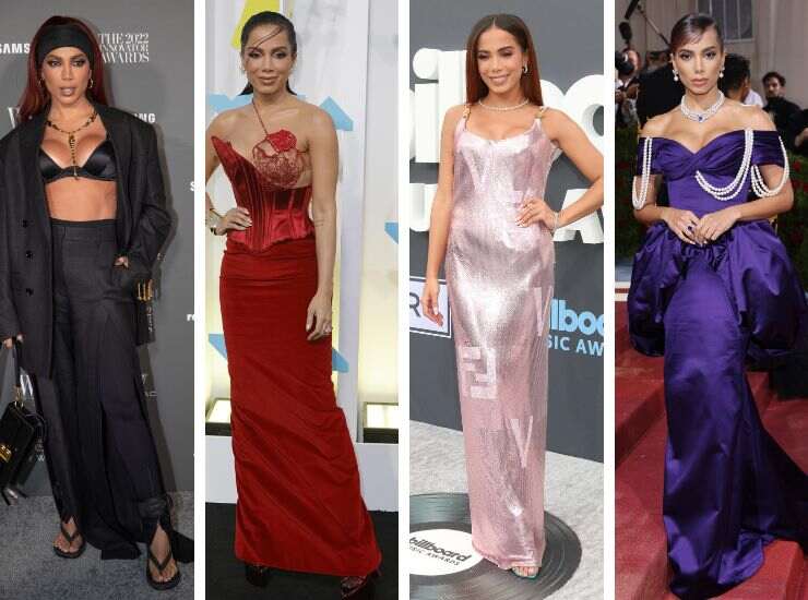Sul red carpet dei WSJ Magazine Innovator Awards 2022, Anitta ha optato per un completo total black in raso con pantaloni a vita alta, crop top e blazer abbinati ad una fascia maxi tra i capelli di Burberry. Colpisce soprattutto il sandalo infradito. La cantante ha scelto una creazione Schiaparelli Haute Couture in vista degli MTV VMAs 2022, sfumatura cremisi con gonna in velluto e corpetto effetto sirena. Per i Billboard Music Awards 2022, invece, ha optato per una creazione Fendace avvistata già in passerella durante la Fashion Week. Il long dress effetto metallico è rosa pastello. Sfumatura Very Peri è invece l’abito proposto al Met Gala 2022. Si tratta di una creazione da diva d’altri tempi, in raso, con scollo a cuore di Moschino, accompagnato da cascata di perle.