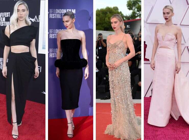 Sul red carpet del London Film Festival, per la première di The Son, ha scelto un midi total black con balza in velluto di Schiaparelli, collezione Primavera/Estate 2023. Ad arricchire l’abito è la scollatura con zip in oro lato schiena con cascata di bottoni. Infine vi ha abbinato gioielli Cartier. Vanessa Kirby ha partecipato anche alla Mostra del Cinema di Venezia 2022 per The Son. Sul red carpet, ha scelto una creazione nude rivestita di paillettes a forma di goccia e cascata di piume di Valentino Haute Couture. Agli Oscar 2021, invece, ha proposto un abito in raso sfumatura rosa pastello di Gucci con collier di diamanti.