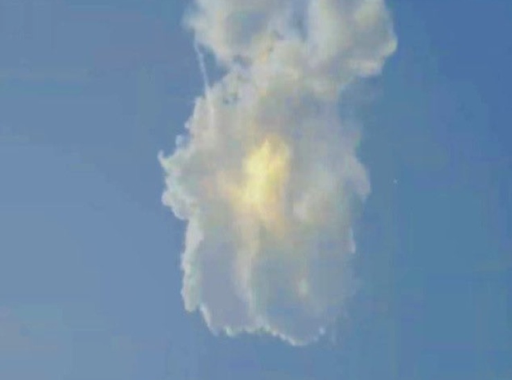 Il momento dell’esplosione di Starship dopo il lancio, sui cieli del Texas. Foto Twitter @FrancoScarsell2