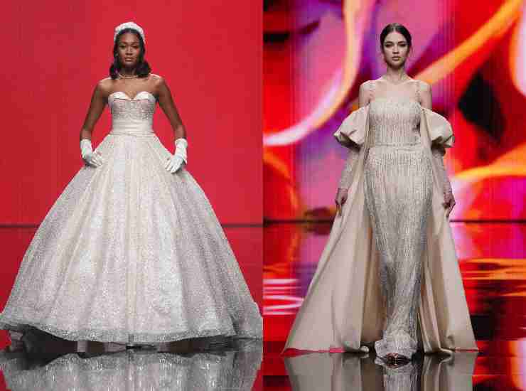 Si Spositalia Collezioni, da sinistra una proposta firmata da Made in Sicily, a sinistra un look di Musani Couture