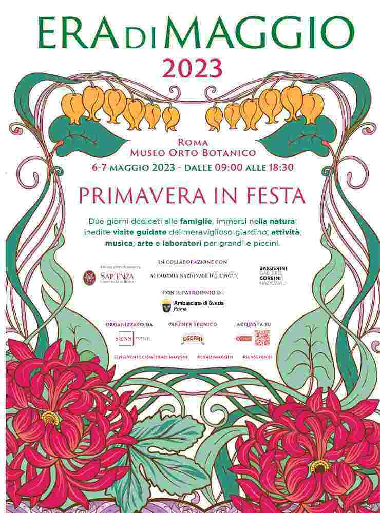 Presso il Museo Orto Botanico di Roma, il 6 e 7 maggio ritorna, per la sua terza edizione, Era Di Maggio. Anche quest’anno, 2023, previsto un programma intenso con percorsi immersivi, laboratori e performance live dedicate a tutta la famiglia. La primavera torna di scena grazie anche alle collezioni in fiore del giardino trasteverino, le mostre di artigianato e una grande novità. Per la terza edizione di Era di Maggio, infatti, Palazzo Corsini apre le sue porte per un’esperienza immersiva che ripercorre la storia di Cristina di Svezia. Due giorni all’insegna dell’arte, della cultura e della natura grazie a SENS Eventi, società leader nell’organizzazione di eventi guidata dalla sua CEO Francesca Romana Maroni, in collaborazione con il Museo Orto Botanico di Roma, con Gallerie Nazionali Barberini Corsini e con l’Accademia Nazionale dei Lincei.