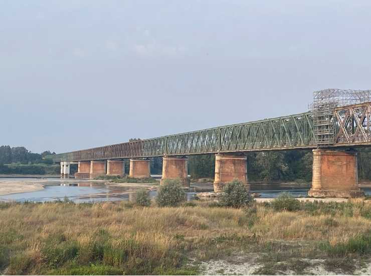 Siccità al Ponte della Becca, sul Po, nel Pavese, la scorsa estate. Foto Twitter @paolomaggioni