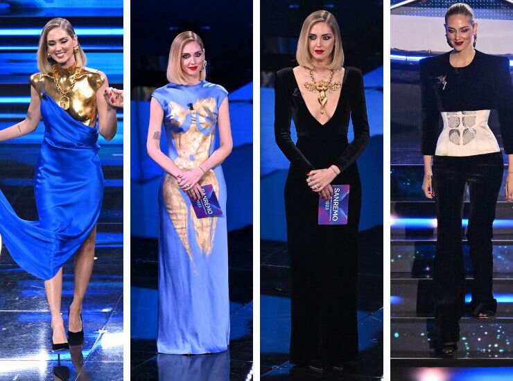 Ogni abito proposto durante il Festival di Sanremo 2023 cela un significato prezioso per l’influencer. Il primo look d’esordio è firmato Dior e, oltre al long dress nero in raso, vi ha abbinato una mantella con incisa una scritta lato schiena diventata virale: “Pensati libera” è il suo messaggio per combattere il patriarcato. Il secondo look, ancora firmato Dior, è una lettera d’amore per il suo corpo, un abito nude che ricalca le forme del corpo femminile. Terzo look è invece rivolto agli haters e alle parole crudeli che spesso piombano sotto ai suoi occhi sui social. Ultimo look della prima serata è l’abito-gabbia sfumatura champagne tempestato di strass.